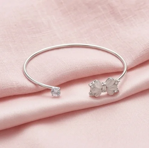 Detailed with a crystal butterfly featuring four marquise cat-eye wings, this premium silver-plated cuff adds a luxurious, modern sparkle to your daily style.