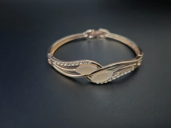 Elevate your look with this premium Fashion Bracelet. It features an intricate floral vine centerpiece detailed with luminous cat-eye petals and radiant crystals.