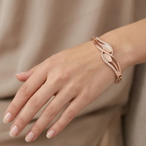 Indulge in sophisticated luxury designed for the modern lifestyle. This Floral Vine Fashion Bracelet is meticulously crafted to ensure 24/7 daily wear durability. The high-grade rose gold plating is applied with precision to resist tarnishing, allowing the delicate floral details and shimmering stones to maintain their brilliant luster through every part of your day.