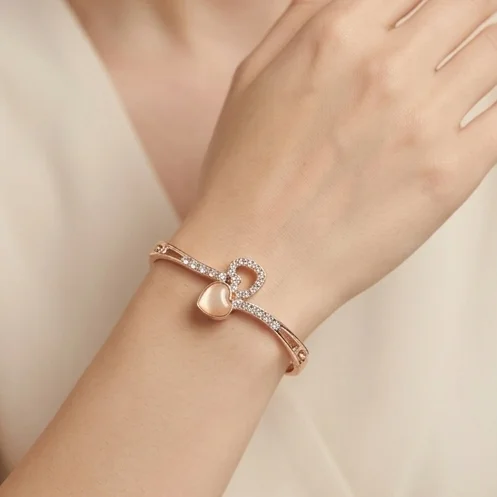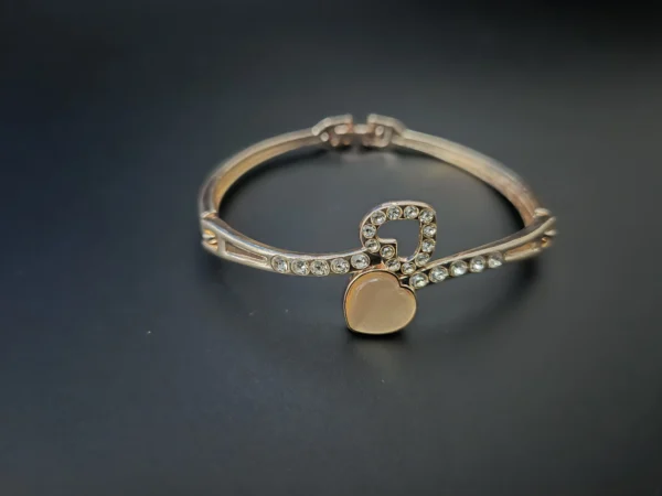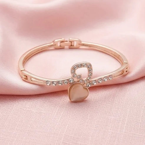 Detailed with a heart-shaped cat-eye stone and a crystal-encrusted loop, this premium bracelet offers a romantic, luxurious glow for everyday elegance.