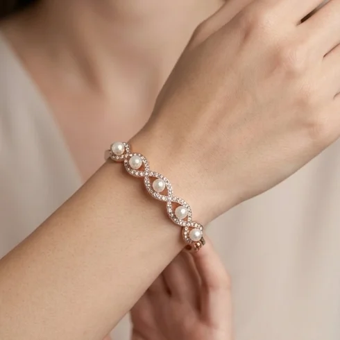 Experience elegance that stands the test of time. This Infinity Pearl Fashion Bracelet is meticulously engineered for 24/7 daily wear, utilizing a high-grade rose gold plating that resists tarnishing. The durable construction ensures that the intricate stone settings and radiant finish remain flawless through your professional day and evening social events.