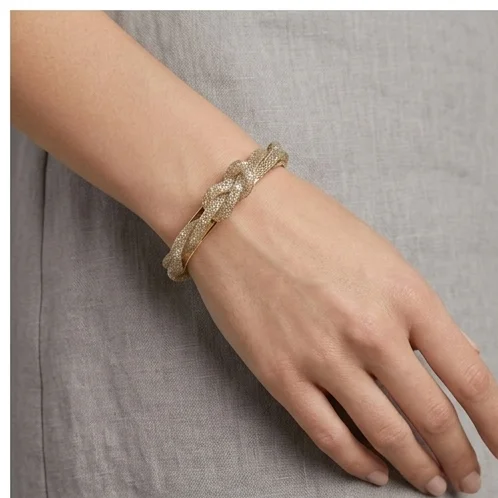 Detailed with a woven mesh infinity knot centerpiece. This 100% waterproof and never-tarnish piece offers a sophisticated, textured look for daily wear.