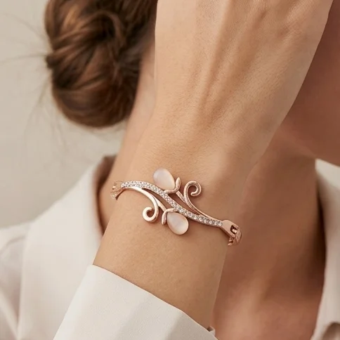 Embrace elegance that lasts. This bracelet is meticulously crafted for 24/7 daily wear durability, utilizing a superior rose gold plating technique that protects against tarnishing and daily friction. The robust framework ensures that the delicate swirls and precision-set crystals remain intact and radiant through your busiest schedules.